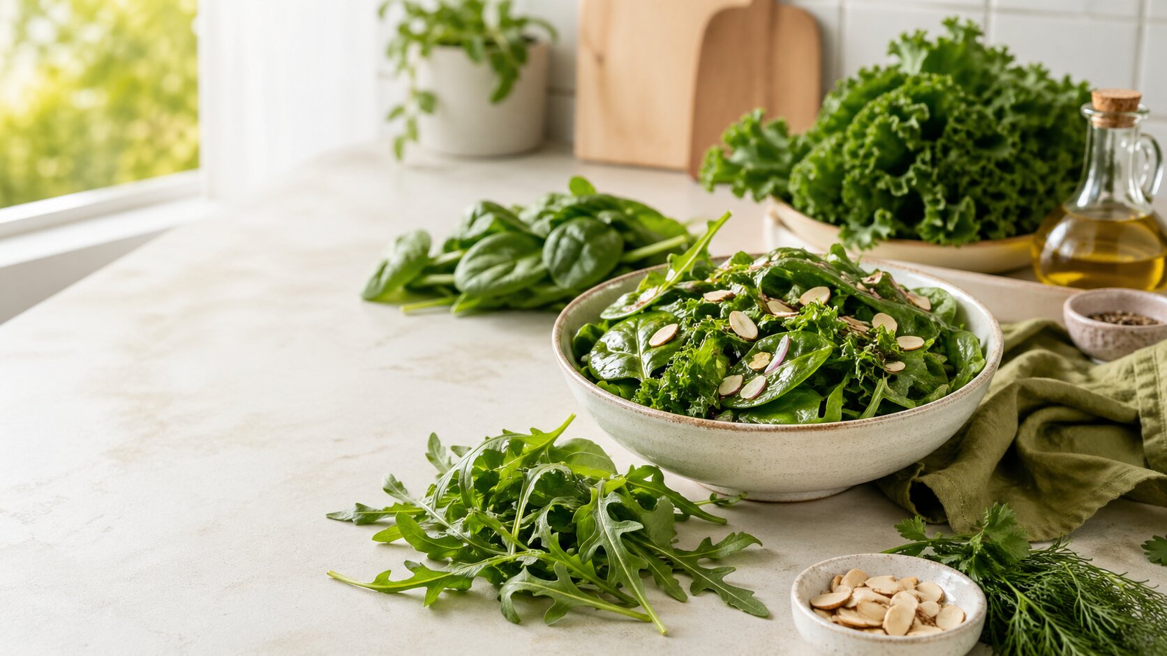 Дружелюбный и практичный гид по использованию листовой зелени — шпината, кейла, рукколы, мангольда и ромэна — в салатах, супах, соте, смузи, зерновых боулах, пасте и повседневных блюдах.