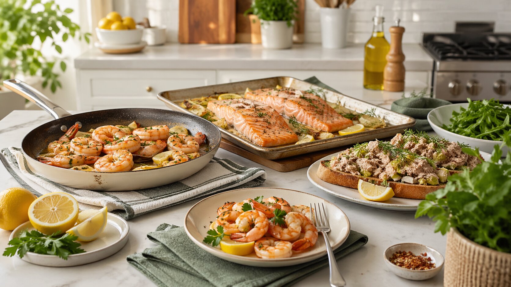 Сделайте морепродукты простыми, удобными и реалистичными для повседневного рациона с помощью практичных советов по использованию креветок, лосося, консервированного тунца, белой рыбы, замороженных морепродуктов и быстрых идей для блюд на каждый день.