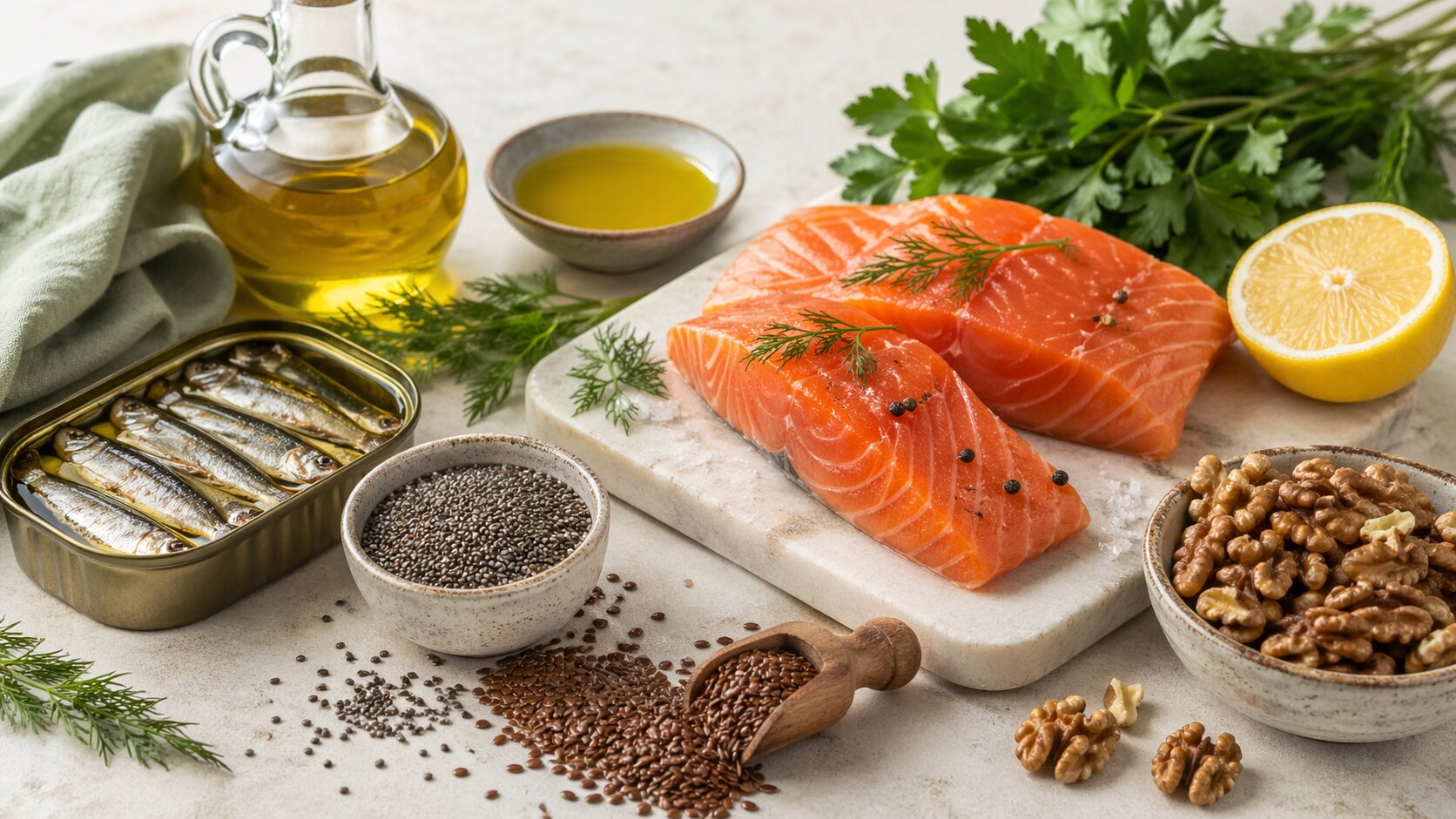 Простое руководство с акцентом на еду: жиры омега-3, жирная рыба, добавки с рыбьим жиром и повседневные способы наслаждаться лососем, сардинами, скумбрией, форелью, грецкими орехами, чиа и льном.