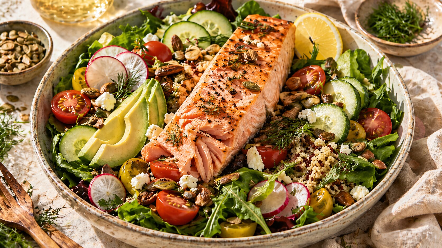 Свежие и сытные идеи салатов как полноценного блюда: с белком, злаками, полезными жирами, хрустящими добавками и ароматными заправками, благодаря которым салаты кажутся завершёнными и по-настоящему вкусными.